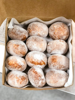 One box of one dozen (12) malasadas dusted in a variety of sugar flavors. Select from our sugar choices.